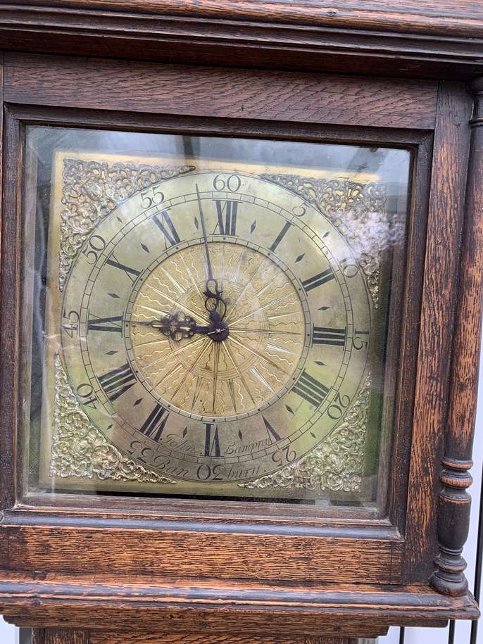 John Lamprey 1704 - 1759 long case clock birdcage movement. Requires suspension spring