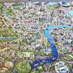 Explore London’s iconic sights with this beautifully illustrated 1000-piece jigsaw puzzle from Corner Piece. Features a detailed map of central London with famous landmarks and neighbourhoods. Very educational with lots of cabs, buses and phone boxes. Puzzle size: 68 x 48 cm Box in excellent condition. All pieces present and accounted for. Only bought at Christmas and done once.
