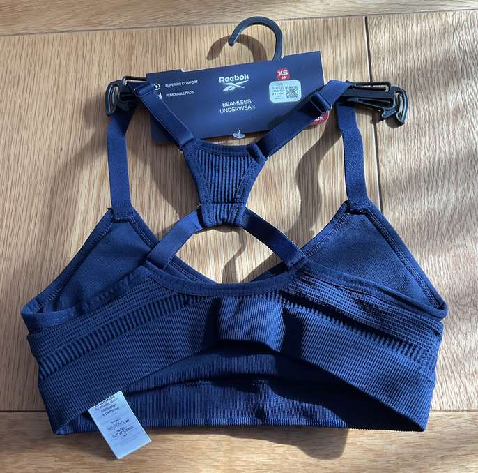 Brand new, never worn, Reebok vector navy, XS sports bra. Adjustable straps and removal pads. Collection only.