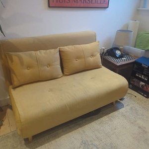 This is a two-seater sofa. Originally from the brand 'made'. They are currently selling something very similar at this link Regular Haru 2 Seater Sofa Bed | Made https://share.google/gl6dyVuw0ftAfmdGi Works really well, we just need to get rid of it as the room it's in will now become a guest room with a double bed so no space for it. Note that the material is fabric and there are stains on the seating area. I'm sure they can be removed. We just haven't had any time to do this. It's already assembled and could probably fit in a hatchback car with the seats down or a slightly bigger vehicle Height 80cm Width 120cm Length seated 70cm Length as bed 180cm