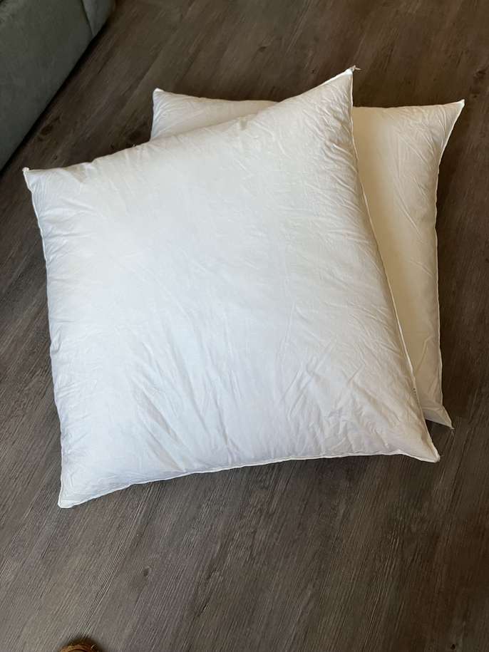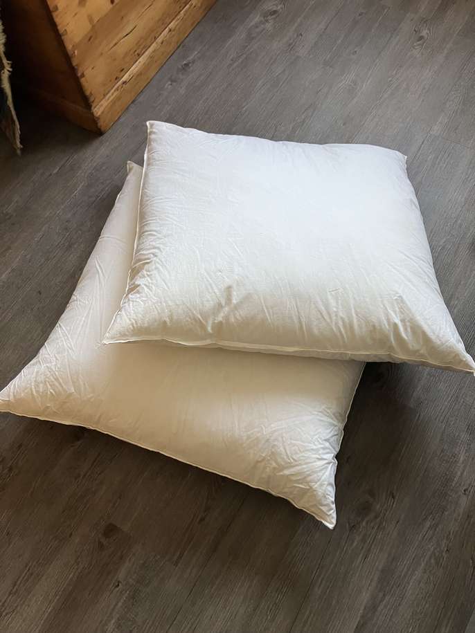 2 floor cushion pads This item is in Ledbury GB All the details Almost new feather floor cushions ready to cover. 28inches x 28 inches 71x71 cms Category Home & Garden Request This Item Ask a Question Post Message