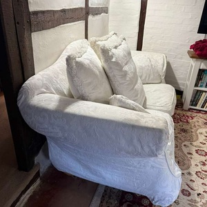 White patterned sofa, feather filled love seat, removable cushions and washable covers. Whoever can pick up the quickest from Coneyhurst will win the bid. 1m 80 cm wide, 100 cm depth and 97cm at highest point