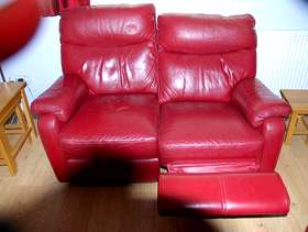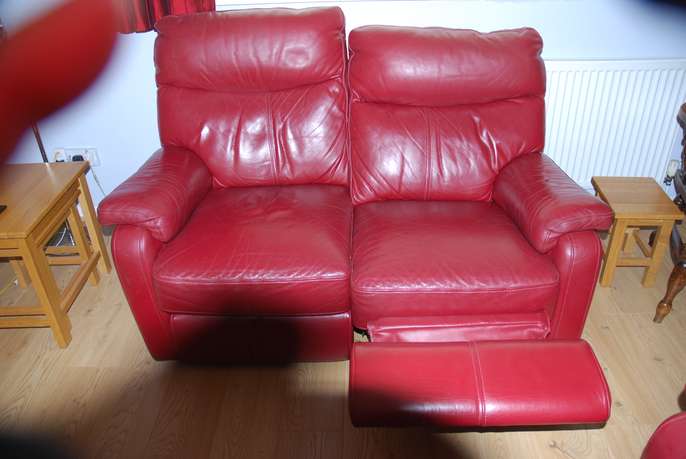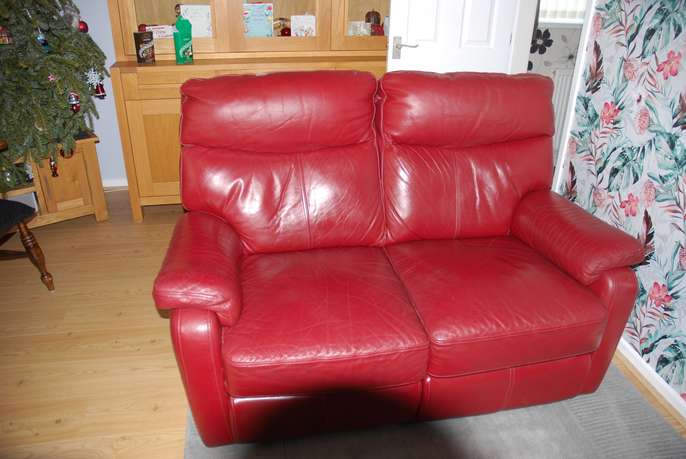 2 x 2 seater red leather manual recliner sofas. Must be collected on Friday 9th January. We are located in Rhyl.