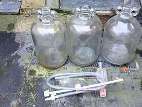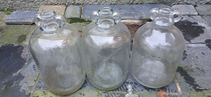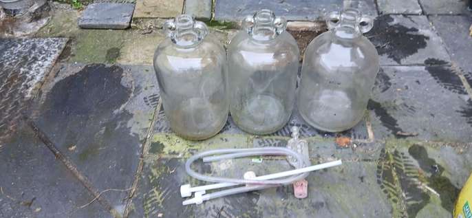 3 Demijohns and a few accessories. in need of a clean but otherwise I good condition