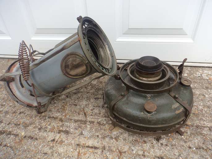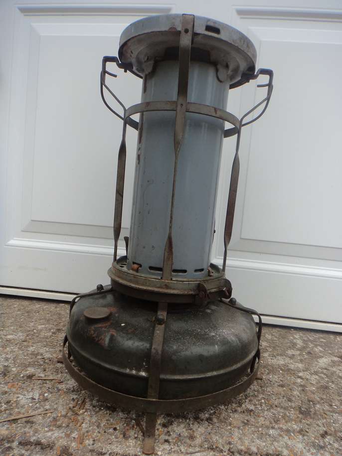 The most popular household heater in the 1950's and 60's. Approximately 3kW output. very easy to fill and use with no smoke or smell. Built in fuel level indicator. Hinges down as illustrated for lighting and easy to use control knob to adjust heat output. A really useful heater and also a collectors item.