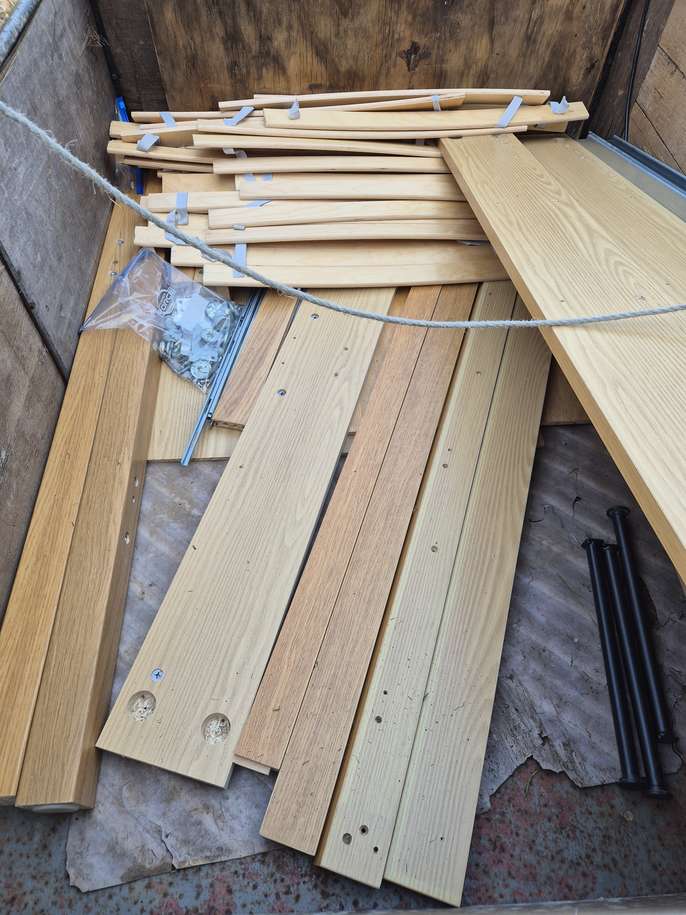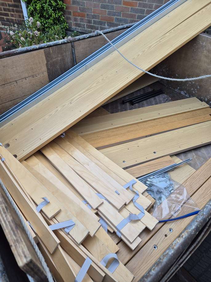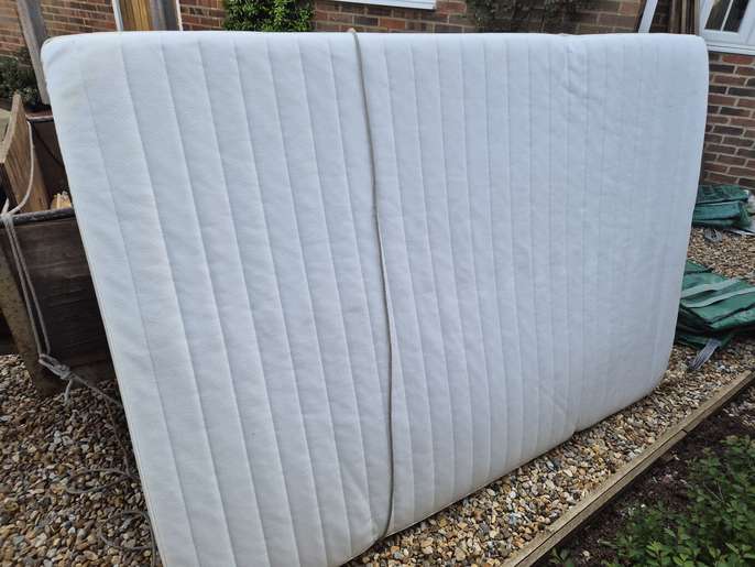 200 cms X 150 cms good quality pine bed. Now completely flat packed ready to go to the tip which is where it will go if not collected by 14 April No instructions