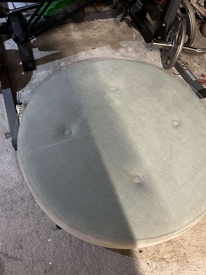 This silver footstool has always had a piece of glass on top and used as coffee table. Good clean condition