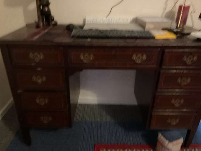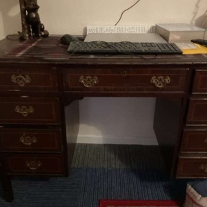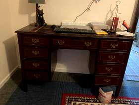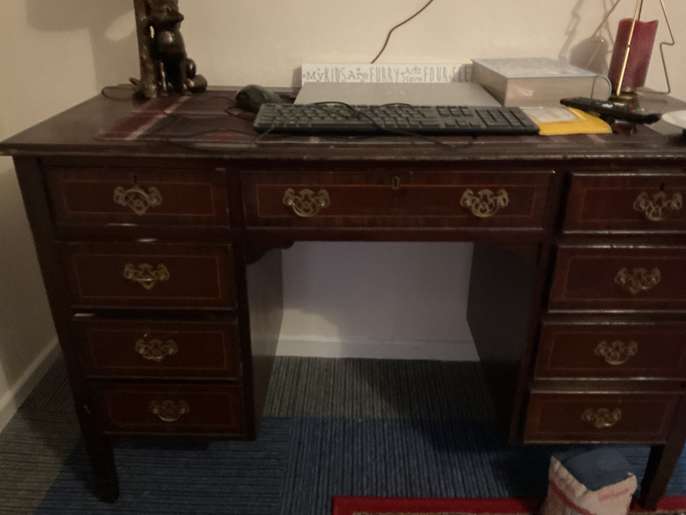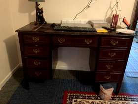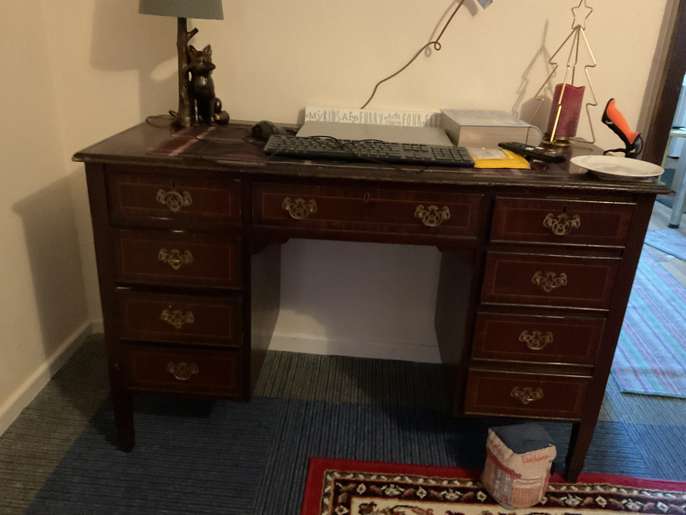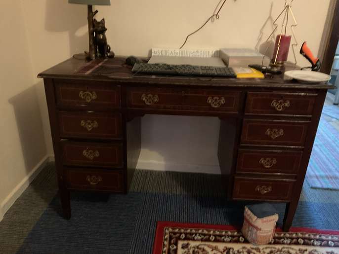 Good solid piece of furniture desk that could be used in the home office, Hobby room or dressing room great lots of very spacious drawers looking for a new home will need two people to lift on your own transport. She's a good solid bit of furniture just needs SOLD EMPTY ONLY