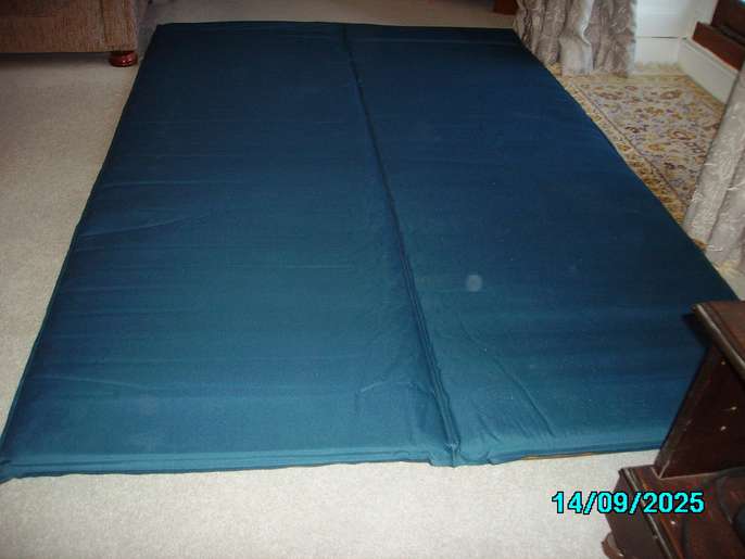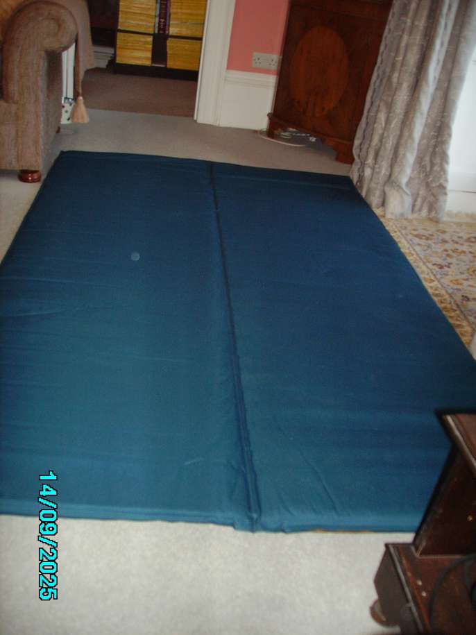 Self inflating sleeping mat suitable for tent - about 2 metres long by about 1.5 metres wide and about 4 cms thick when inflated. Please ignore incorrect date on photos.
