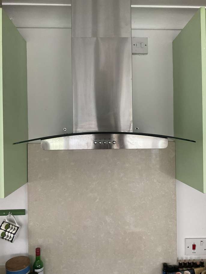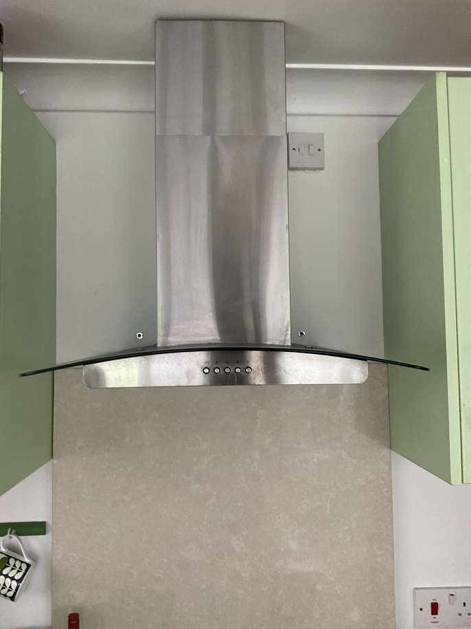 In very good condition this extractor fan ( with single light)is hardly used and only getting rid of it as I’m having the whole kitchen replaced. I also solid oak kitchen cabinets to go to a good home!