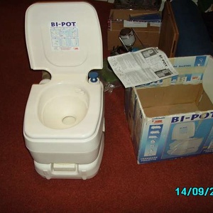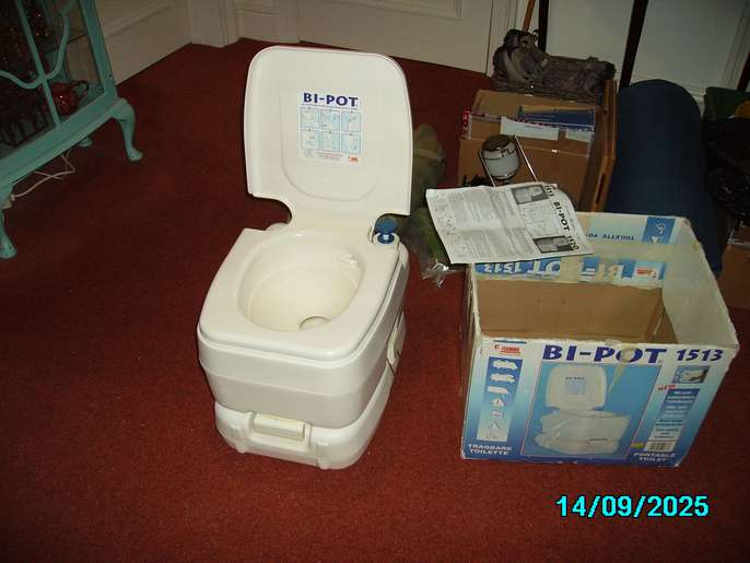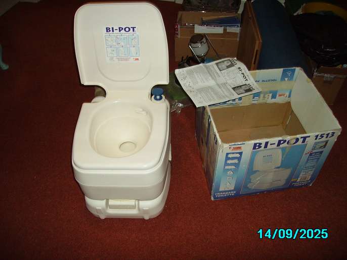 Never used for solids! Fully working Fiamma 1513 ( 13 litres catchment pot, 15 litres flush system) with half used bottle of flush liquid. Please ignore incorrect date on photos.