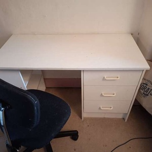 White Flat pack Desk and chair. Used but in good condition. Muirend (on Clarkson road just down from Sainsbury's) Will need 2 people to collect.