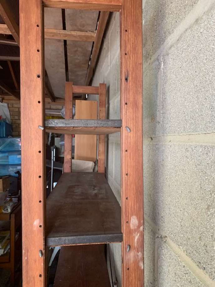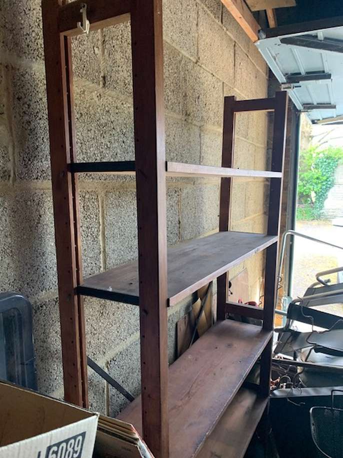 Four wood shelves in stand This item is in Eynsham GB All the details Width: 3 feet height: 6 feet can be dismantled for transport Category Furniture Request This Item Ask a Question Post Message