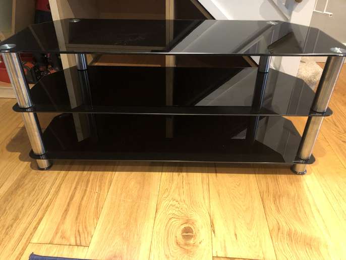 Glass tv stand This item is in Stanstead Abbots GB All the details Black glass tv stand 3 shelves great condition Category Furniture Request This Item Ask a Question Post Message