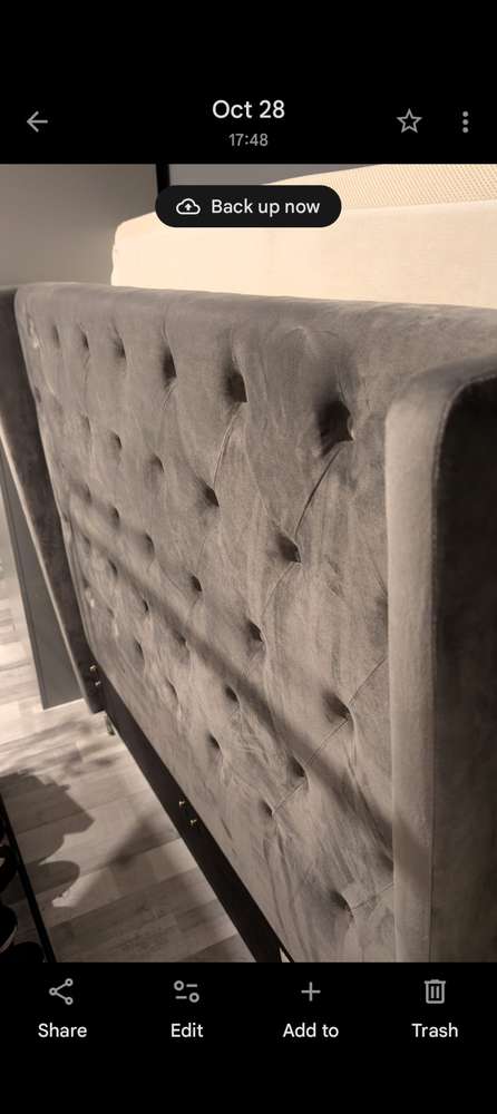 Double bed base, grey velvet headboard and side's with wooden slats, not very old only had it 6 months just a bit low for me Must be able to pick it up.