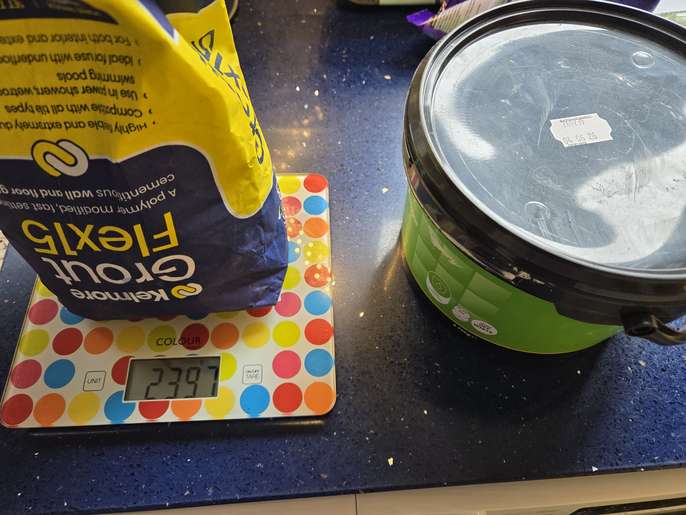Large 2.4kg of grout and nearly a full tub of adhesive if anyone wants for a tiling job.