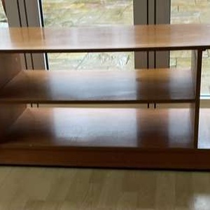 Wood hi unit with two drawers and spaces for records and tape decks, etc. 168cm L x 39.5cm D x 48.5cm H