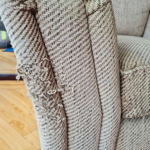 Large heavy armchair with loose cover included Material of chair has been scratched by our cat but can be covered with a blanket or fitted cover and the cushions and springing are all still firm Will need a large car or van to transport.