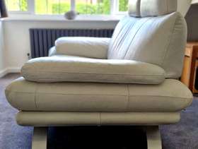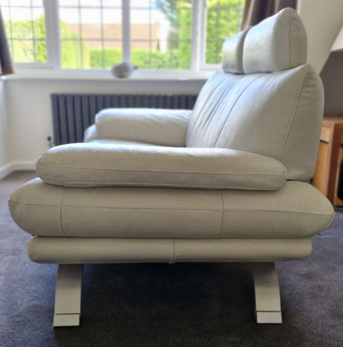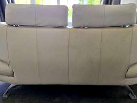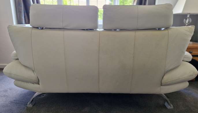 Ivory Leather 3 Seater Sofa & 2 Seater Sofa Adjustable headrests There are a few small areas of damage see some of larger areas in the photos. Still plenty of life left Approx overall dimensions: - 3 seater: 216cm long x 93cm deep - 2 seater: 174cm long x 93cm deep