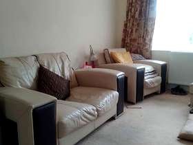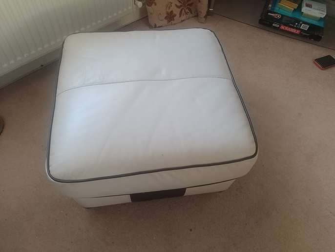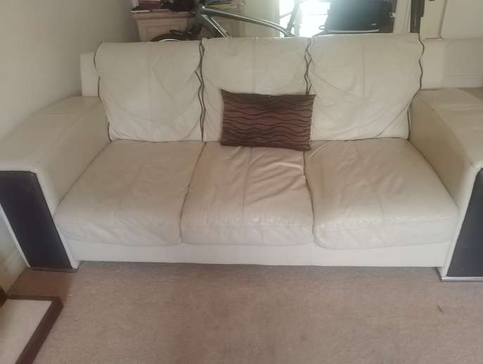 Cream leather suite three seater plus footstool plus one chair plus two seater all very good condition no were and tear must all go together