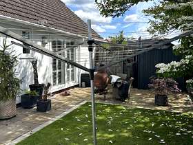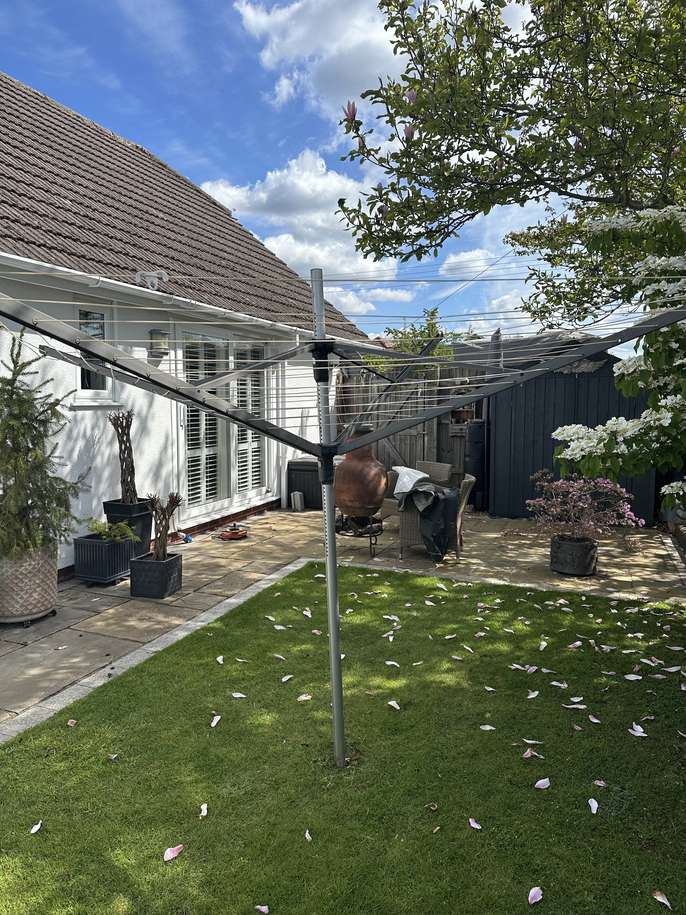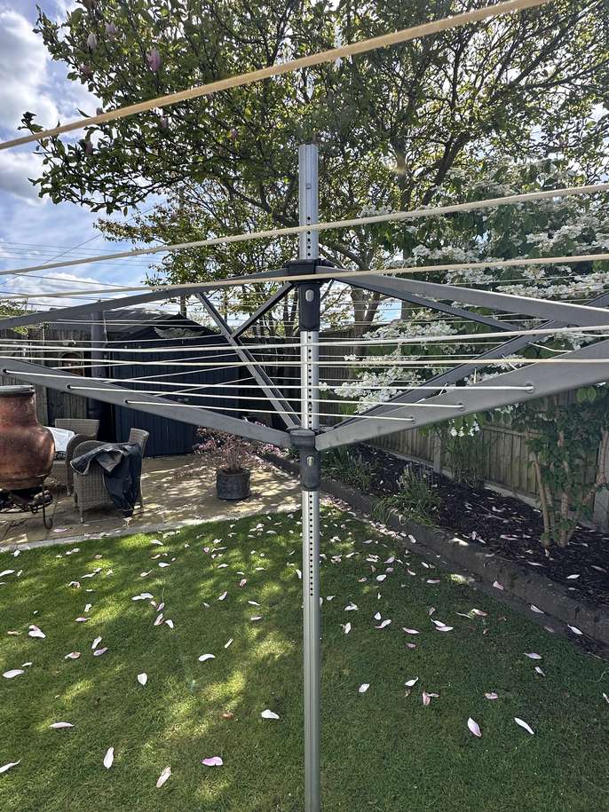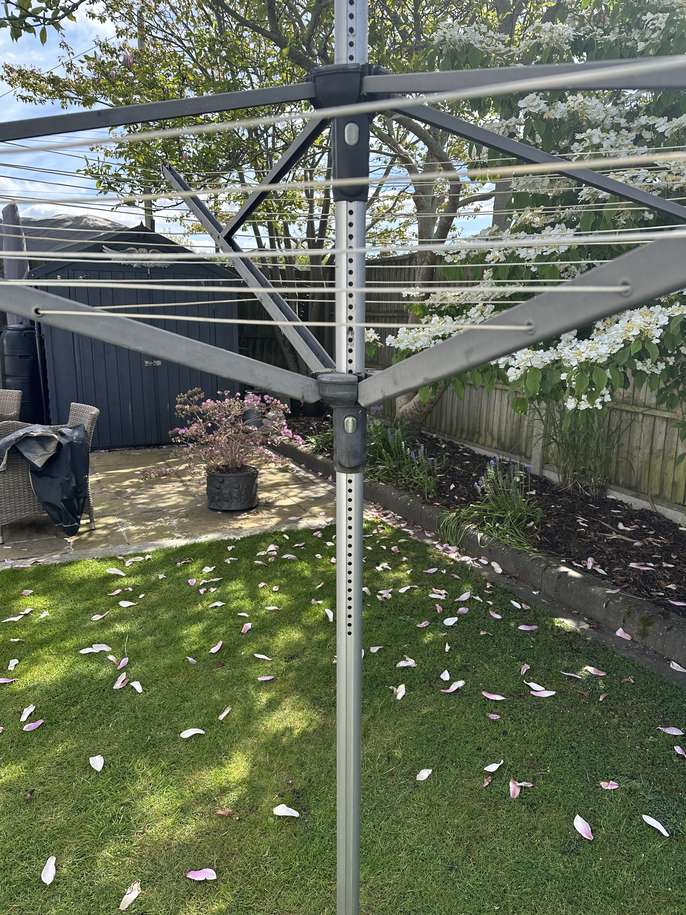 Height adjustable , very robust rotary dryer, used but still in reasonable condition. Collect from West Moors Ground spike hole socket not included.