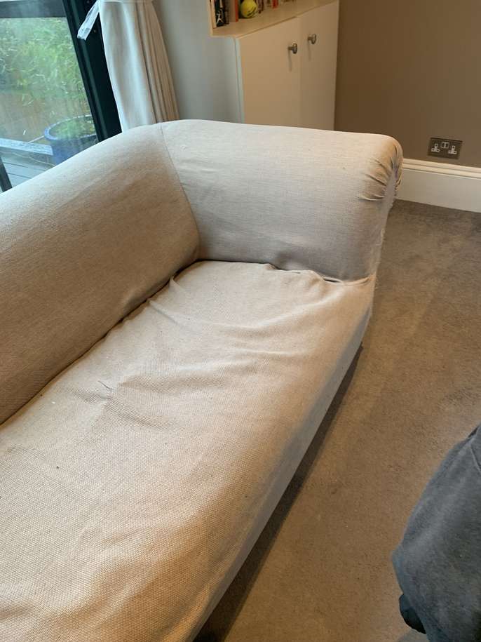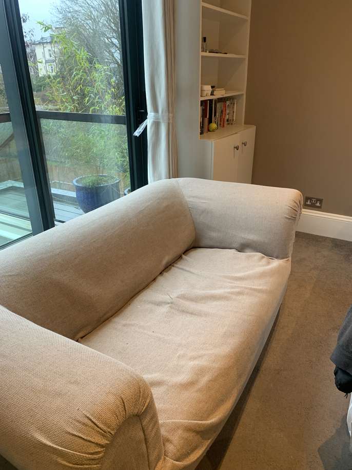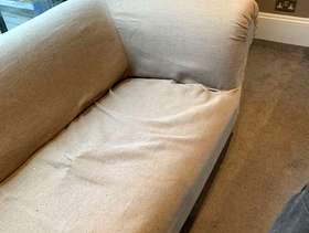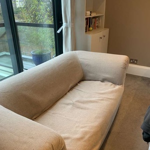3 seater sofa with beige removable and washable fitted cover. Very comfortable and lovely Chesterfield shape. Bought originally from Fired Earth. Some tagging on cover at edges. From a smoke free home. Free on collection from Chiswick, West London.