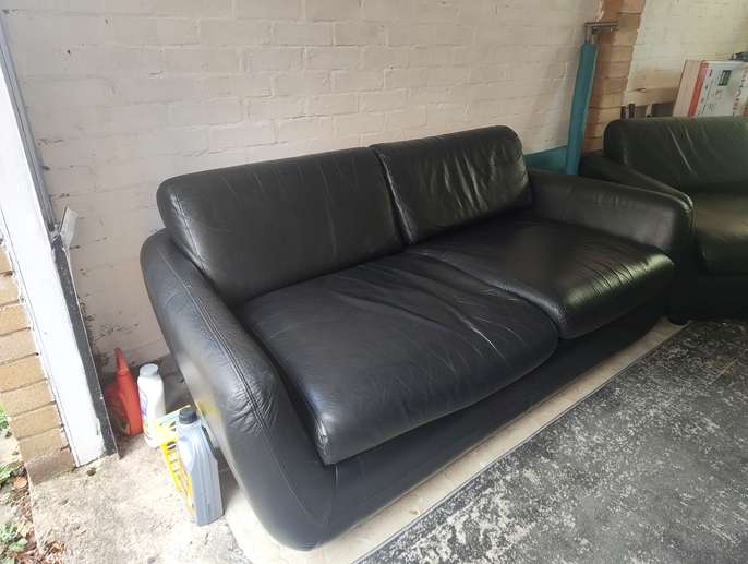 Sofa's x 2 2 - 3 seaters This item is in Berkhamsted GB All the details Black leather Habitat sofa's. Rips on underside of cushions. Must pick up Category Furniture Request This Item Ask a Question Post Message