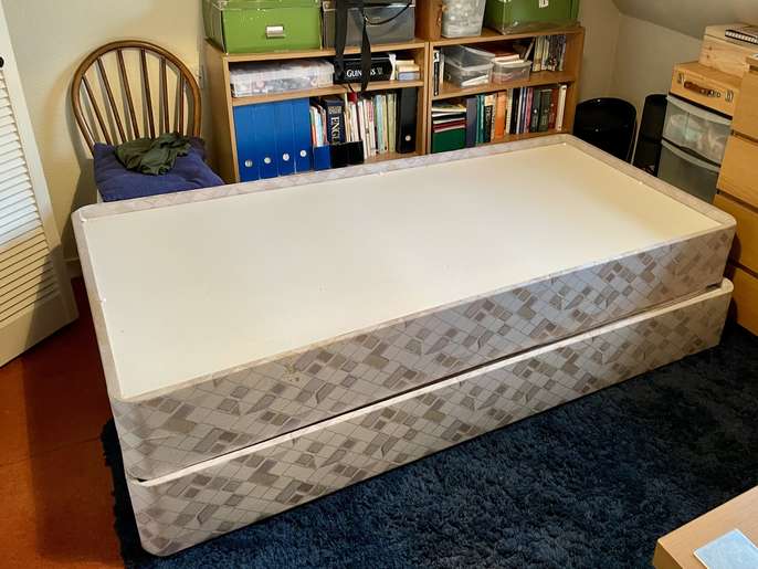 Pair of stackable single divan beds with mattresses. Standard single bed size. Collect from St John’s Town of Dalry. Decent condition, useful if you have visitors.