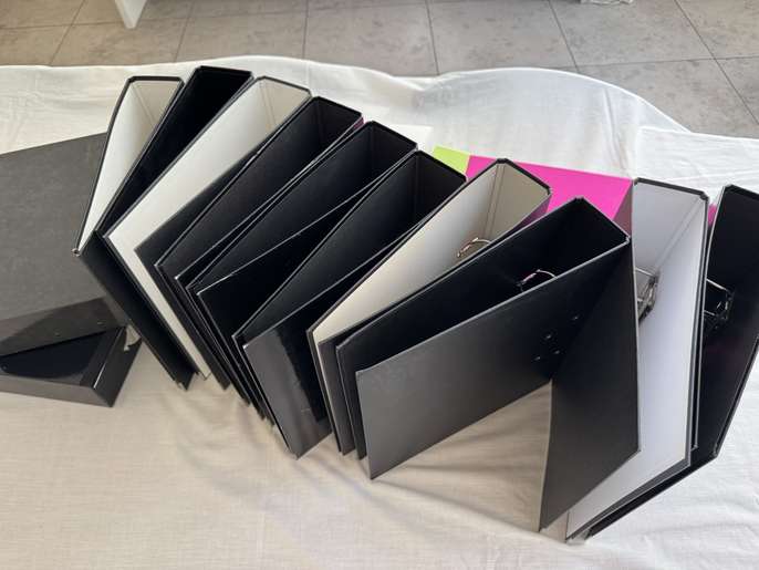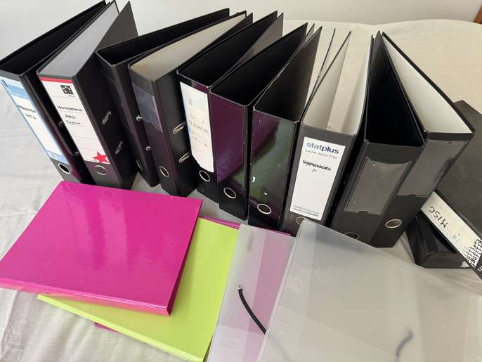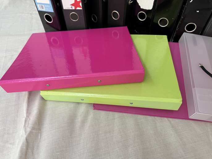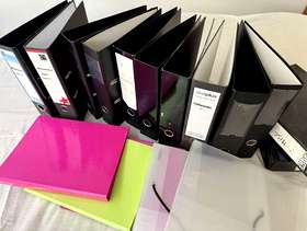 Files - Miscellaneous Stationery Files: Lever Arch x10 (Black); A4 'Narrow' x3 (Pink and Green); Clear Plastic x2 (Need New Elastic); Box Files x2 Black. Need new spine labels. In working order. Collect New Malden KT3.