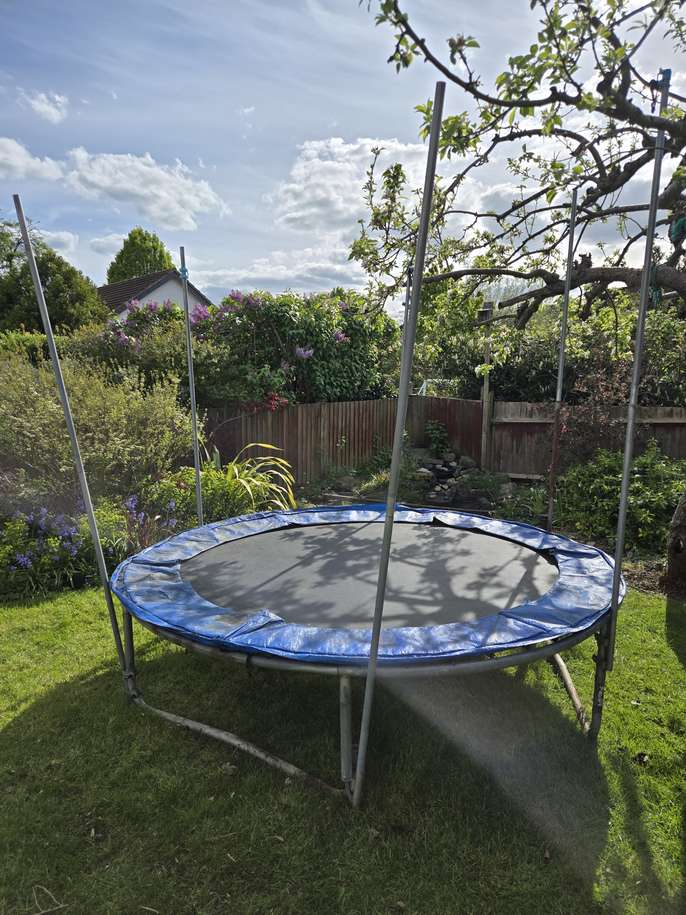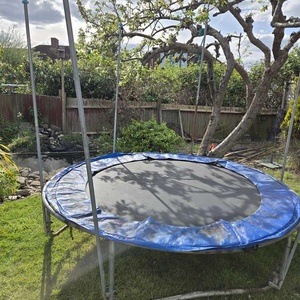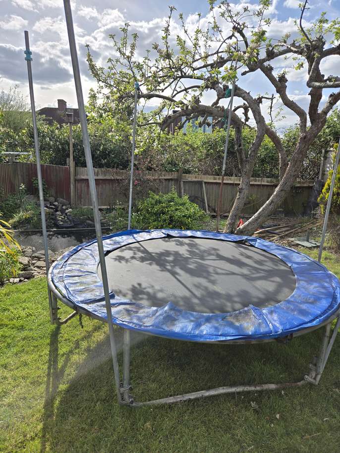 Free 8' trampoline. Needs a new net and cover. 15 years old, still used occassionally by grown up children and well loved. Collection from Lee SE12