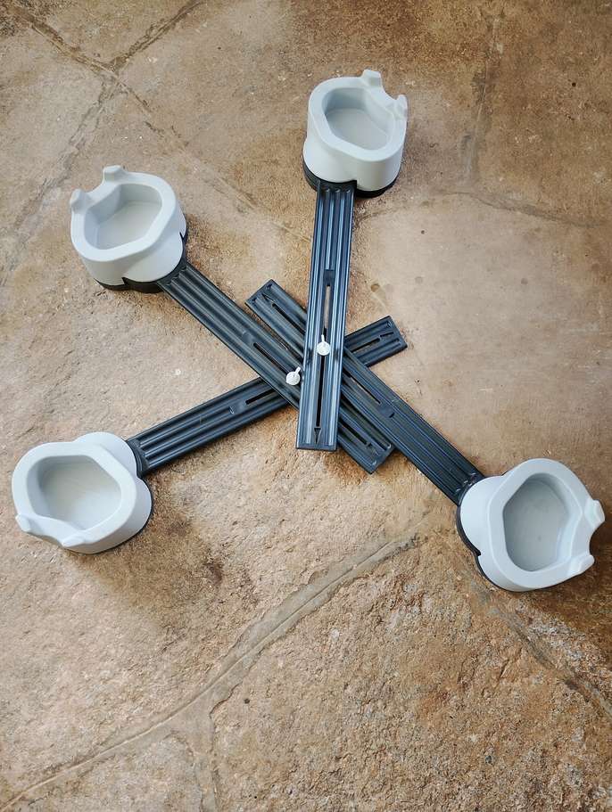 (1) Multi Purpose Furniture Raiser has been used to raise the height of an armchair by 2" (50mm) (2) Bed Cage for Legs: Adjustable aluminium alloy foot tent blanket support frame to relieve pressure from bed covers for feet/legs with 3 clips. (3) Height adjustable quad walking cane. (4 feet). (4) Height adjustable tripod walking stick. (3 feet).