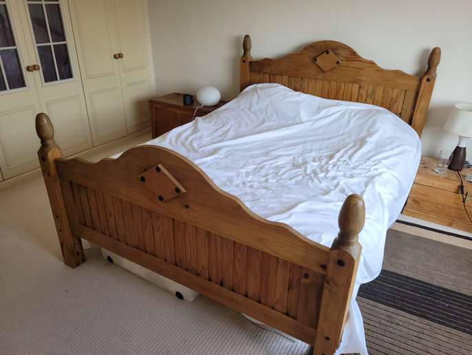 Wooden slatted bed frame (king size), no mattress. In good condition, please collect from Aughton, free to anyone that can use it